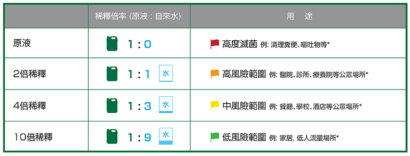 *例子只供參考,需按照實際情況自行調配原液以達致滅菌效果