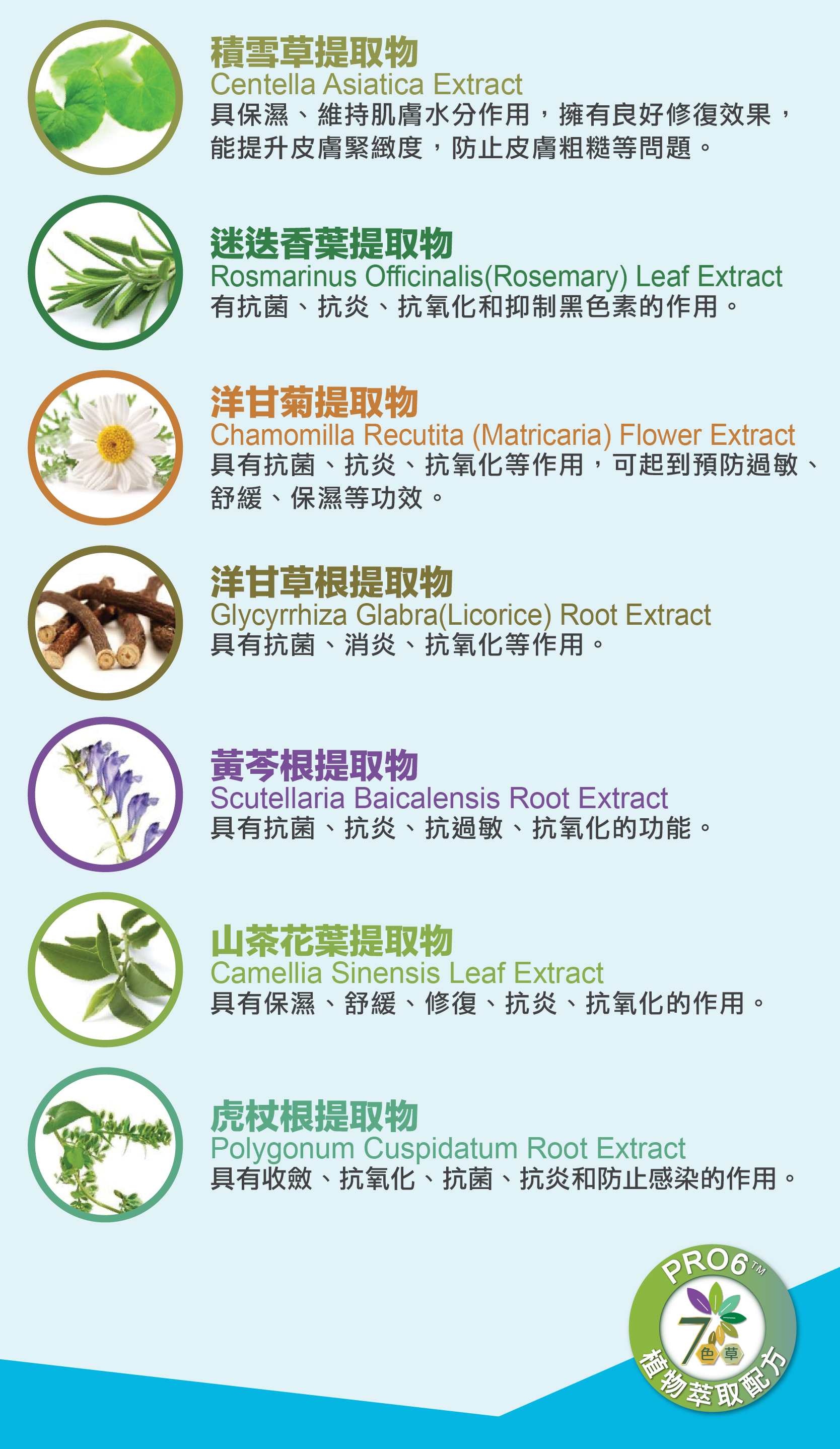 1. 專利自我修復成份 - PRO6™七色草天然配方